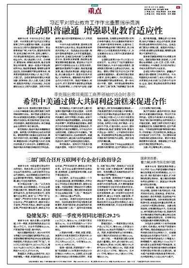 习近平对职业教育工作作出重要指示强调 据新华社电 中共中央总书记、国家主席、中央军委主席习近平近日对职业教育工作作出重要指示强调,在全面建设社会主义现代化国家新征程中,职业教育前途广阔、大