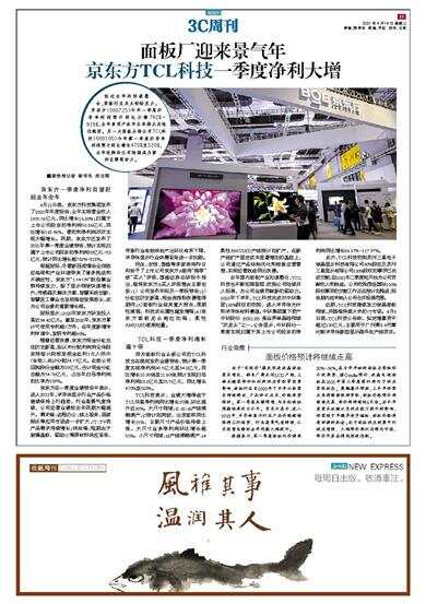 面板厂迎来景气年 京东方TCL科技一季度净利大增