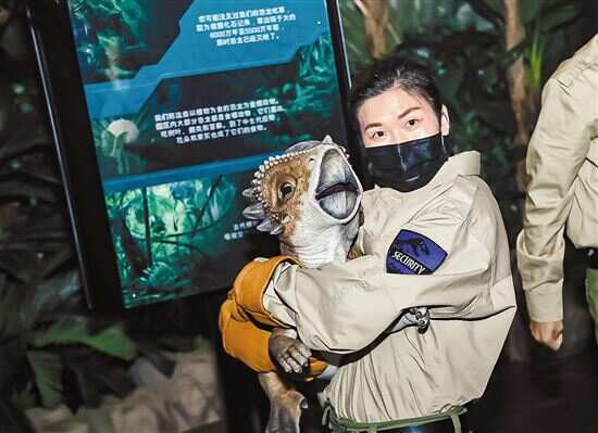 ■养育员抱着会动的小恐龙宝宝,让观众近距离接触。 |