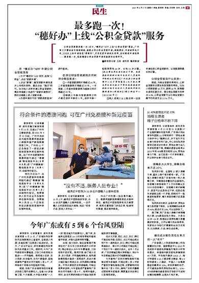 新快报讯 记者高镛舒 通讯员穗卫健宣报道 4月16日,记者从广州市卫健委获悉,自2021年4月12日起,广州市启动在内地的港澳同胞适龄人群接种国产新冠病毒疫苗工作。广州在11个区各指定了一家定点