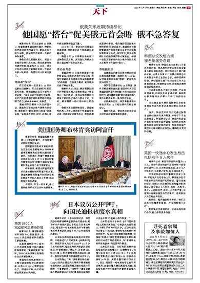 据新华社电 美国国务卿布林肯15日突访阿富汗,并与阿富汗总统加尼举行会谈。 据阿富汗总统府发表的声明,加尼当天在首都喀布尔与布林肯就美军撤离和反恐等议题交换了意见。加尼表示,阿富汗尊重美国