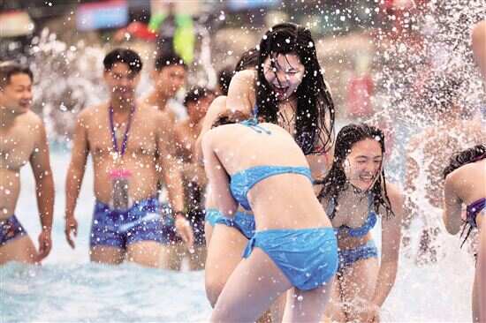 ■4月17日,众多游客在水上狂欢。 新快报记者 夏世焱/摄 |