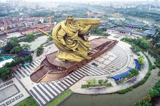 ■荆州市巨型关公雕像(2020年9月16日摄,无人机照片)。新华社记者 肖艺九/摄 |
