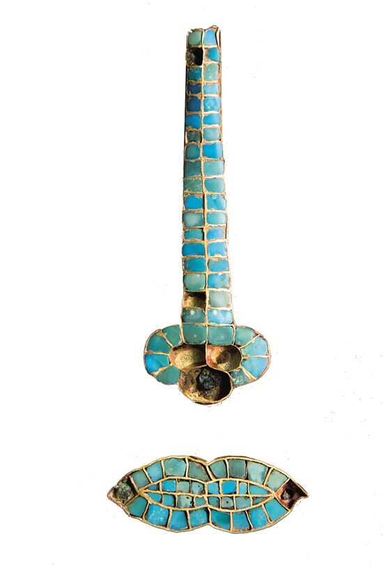 ■青海都兰热水墓群2018血渭一号墓出土的镶绿松石金覆面 |