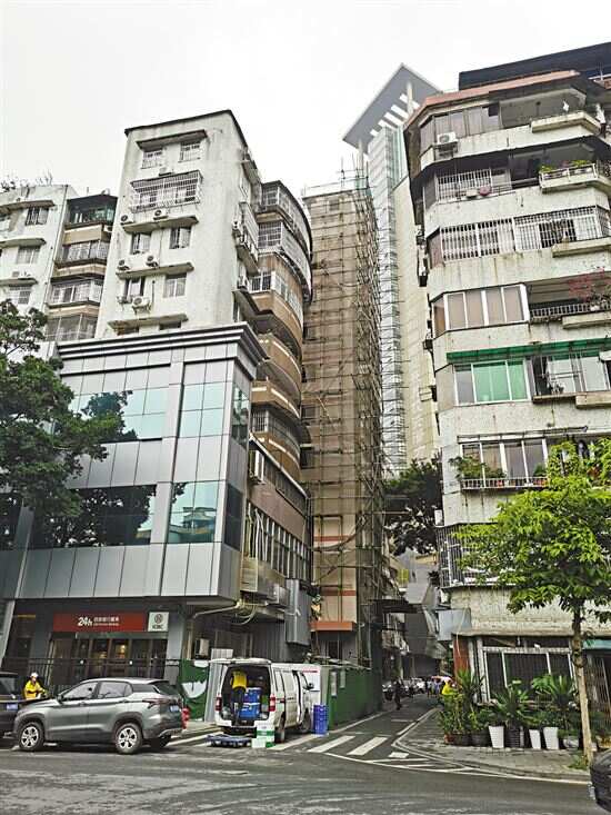 ■在广州市天河区德欣小区,一栋旧住宅楼正在加装电梯。 |