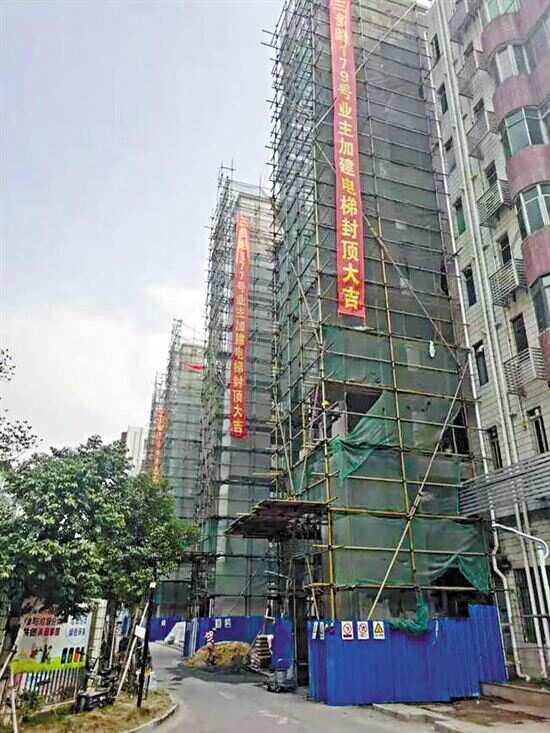 ■怡德苑小区是广州市黄埔区首个成片连片加装电梯规划试点小区,小区内有4座连片电梯同时开建。 受访者供图 |