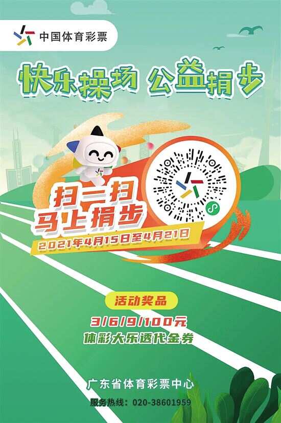 新快报讯 记者陆妍思 通讯员粤体彩报道 “快乐操场 公益捐步”活动已进行五天。共有87725名小伙伴参与,共捐赠494979731步,其中有23043名幸运小伙伴抽到大乐透代金券。截至4月18日,30万元资金已提前筹集完毕,接下来广东体彩将快马加鞭准备好价值30万元的体育器材,将大家的爱心送至学生手上。 广东体彩开展庆祝中国共产党成立100周年系列品牌活动,“公益体彩 快乐操场”革命老区苏区行,为10所学校捐赠30万元体育器材在活动启动前开展“ 快乐操场 公益捐步 ”线上活动。 4月15日至21日09:00~22:00,用户扫描活动二维码,或者点击“广东体彩”微信订阅号“快乐捐步”菜单栏,进入“快乐捐步”微信小程序,上传微信运动实时步数。参与者每天捐赠步数达到3000步,即可兑换3元“体彩爱心基金”,之后每捐3000步增兑3元,捐赠步数不设上限,可分多次上传,每人每天兑换“体彩爱心基金”上限为30元。每天捐步数满3000步的,还可以参与一次抽奖,赢取大乐透3/6/9/100元代金券。