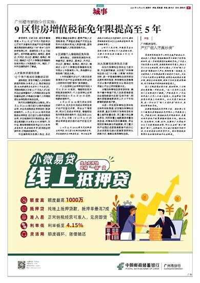 广州楼市新政今日实施: 新快报讯 记者王彤 通讯员穗建报道 4月21日,《广州市人民政府办公厅关于完善我市房地产市场平稳健康发展政策的通知》(下称“通知”)在市政府官网公布,该通知自4月2