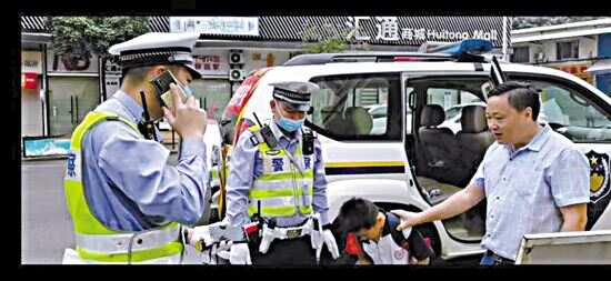 新快报讯 记者杨英杰 通讯员 朱穆报道 4月16日上午正值上班高峰期,S256省道厚街濠畔鞋材广场路口行人匆匆、车水马龙,厚街交警大队民警曾东明、曾卫权、刘新清等正在此开展“莞微劝导”活动,维持交通秩序。 这时,一名身穿校服、背着书包的小男孩出现在安全岛上,男孩无精打采、神情疲惫,在安全岛上不断徘徊。“现在已经是上课时间了,这名小学生怎么还在这里?怎么没有家长陪同护送?”正在执勤的曾东明发现了这名小男孩,赶紧来到小男孩的跟前,了解情况。 小男孩向交警叔叔表示,自己在厚街寮厦某小学读书,由于早上父母吵架,互相斗气,没有人送他上学。眼看上学时间就快到了,自己只好从康乐南路附近的家独自步行去学校,结果途中迷路了。小男孩说着说着还哭了起来。 曾东明一边安抚孩子,一边询问其父母的姓名及联系方式。为了确保小男孩的安全,曾东明与同事一起驾驶警车将小男孩送往学校。安全护送到学校、并将小孩交给校长后,执勤民警联系上了孩子的父母。在电话里,民警对孩子的父母进行了批评教育。 4月20日下午,男孩的学校专门给厚街交警大队送来感谢信,以感谢交警对学校及学生的帮助。