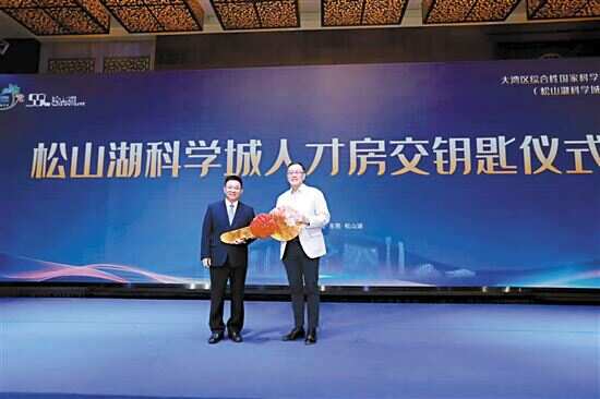 新快报讯 记者杨英杰报道 4月21日,在东莞召开的大湾区综合性国家科学中心先行启动区(松山湖科学城)政策发布会上,松山湖科学城人才房交钥匙仪式举行,由东莞市委常委、松山湖党工委书记刘炜为人才代表——松山湖材料实验室常务副主任陈东敏交上600套人才安居房钥匙,这600套人才房计划年内完成交付。 根据《松山湖科学城人才社区建设规划》,近期,松山湖将聚焦中心区创新活力社区、西部国际科教社区、南部滨湖未来社区共三大示范社区建设,推出总建筑规模约70万平方米的人才房,预计3年内完成住房建设5000套,5年内完成近10000套。 其中,本次首批启动交付钥匙的600套人才房,位于南部滨湖未来社区,周边拥有中心小学、滨湖万科里等教育资源及商业配套,有效满足高层次人才居住需求。 目前,松山湖累计各类人才近10万名。随着松山湖科学城建设加快推进,这里将散发更强劲的“磁吸效应”,吸引更多来自全球各地的创新创业者。优化城市配套及人才住房体系,无疑是松山湖科学城积极打造人才高地,持续激发创新活力的远见之举。