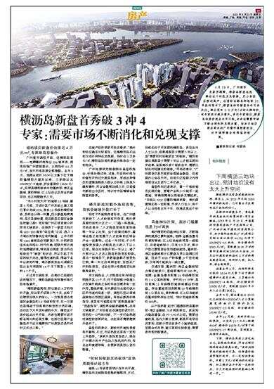 横沥岛新盘首秀破3冲4 专家:需要市场不断消化和兑现支撑