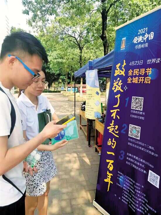 “领读中国·书香岭南”之全民寻书活动再约羊城,市民阅读热情高涨 “领读中国·书香岭南”之全民寻书活动与广大市民连续第四年相约羊城。昨日,千册精美图书在广东财经大学、芳村小学、华南师范大学等11个藏书点悉数免费赠送,引发全民寻书热潮。活动旨在通过赠书引导广大市民通过阅读汲取营养,呼吁大家在快节奏的生活中,重新拾起纸质书本,领会文字的力量。 当日上午9时30分,距离活动开始还有半个小时,广东财经大学站点已排起了长龙,闻讯而来的同学们,正在等待挑选“心水”图书。活动正式开始时,同学们在志愿者的指引下,拿起手机扫码领取图书。领到之后,不少同学在现场驻足阅读。 一位身穿制服的保安大叔出现在队伍中,他说想要送一本书给女儿,以培养她的阅读兴趣,最终他如愿挑选到一本《夜莺与玫瑰》。大约花了两个小时,100多册精美的图书全部找到新主人。由于参与人数较多,部分同学没有领取到纸质书籍,志愿者温馨提醒,可以在活动中领取当当云阅读30天会员,享受海量线上阅读资源。 为帮助小学生拓宽视野,促进他们养成热爱阅读、博览群书的好习惯,“寻书活动”特意在芳村小学“藏”了大量书籍,包括各年级学习教辅等工具书。同学们挑选崭新书本,然后拿着塑料小凳子围坐成一个个圆圈,饶有兴致地阅读起来。记者在现场看到,同学们偏好绘本,阅读的书目以绘本居多。芳村小学相关负责人表示,这些图书将会伴随孩子更好地成长,也能推进书香校园建设。 在华南师范大学大学城校区寻书点,活动正如火如荼地进行。新颖的赠书活动吸引了不少学子。他们驻足,上前询问活动的参与方式,工作人员热情耐心地进行解答。有同学手握书本说道,在“世界读书日”这一天拿到书,能激励自己好好阅读,更加关注书籍的力量。一位同学在拿到书籍后,发现并不是自己日常阅读的小说题材,不过他表示:“阅读不同类型的书可以帮助我走出信息茧房” 。 除了在上述地方,活动还在广东省立中山图书馆少儿部、必胜客“悦读食光”主题餐厅、星巴克臻选广州好世界广场店、星巴克臻选广州沙面店、陶陶居十甫路总店、凯德广场·云尚、凯德乐峰广场和广州文和友同时开展。 2021“领读中国·书香岭南” ◆指导单位:广州市新闻出版(版权)局 ◆主办单位:广东新快报社 ZAKER ◆协办单位:广东省文化学会 ◆合作单位:华南理工大学、南方出版传媒集团、广东人民出版社 ◆支持单位:拼多多 广州新华书店 广东省立中山图书馆 华南师范大学 广东财经大学 芳村小学 广州必胜客 广东星巴克咖啡有限公司 凯德广场·云尚 凯德乐峰广场 陶陶居十甫路总店 广州文和友 ■采写:新快报记者 陈慕媛 黄闻禹 王娟 陆妍思 通讯员 蔡红 刘司尧 ■摄影:新快报记者 郗慧晶