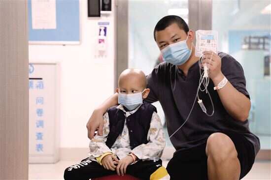 ■小俊彬和爸爸一起面对正在进行的第八期化疗。新快报记者 王飞/摄 |