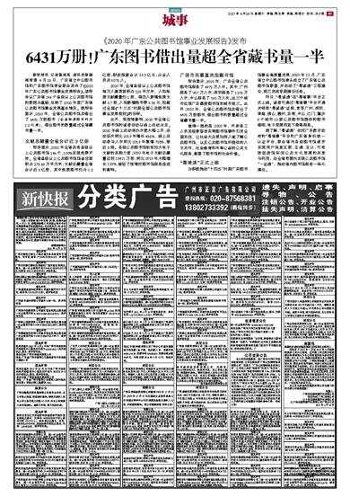 《2020年广东公共图书馆事业发展报告》发布 新快报讯 记者黄闻禹 通讯员陈佩湘报道 4月23日,广东省立中山图书馆和广东图书馆学会联合发布了《2020年广东公共图书馆事业发展报告》。该报