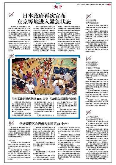 头条 据新华社电 由于疫情恶化,日本政府23日晚再次宣布东京都、大阪府、京都府、兵库县4地进入紧急状态,期限暂定为4月25日到5月11日。实施紧急状态期间,大型商业设施停业、体育比赛等大型