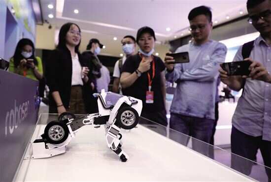 ■深圳市南山知识产权保护中心的产品展示T台,采访团与机器人互动。 |