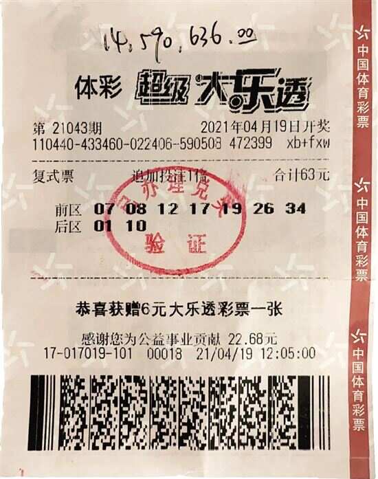 新快报讯 记者陆妍思 通讯员粤体彩报道 4月19日,大乐透第21043期开奖中,广东东莞沙田镇横流南路85号101的4417017019体彩实体店售出的一张63元“7+2”追加复式票中出1注1454万多元追加一等奖,加上小奖总奖金达1459万多元,这也是10亿元大派奖以来,广东首次中出加料头奖。4月21日,中奖者张先生(化名)来到东莞体彩中心办理兑奖手续,纳税金额约为290万元。 在办理兑奖的过程中,张先生透露了更多购彩的细节:“这组号码我是在大乐透10亿元大派奖活动开始时参考了店里的大乐透走势图,然后凭感觉定下来的。没想到派奖活动第五期就中了。” “开奖第二天的上午,我用手机查看开奖结果发现中了。自己不敢相信,等到中午下班的时候,又仔细核对了一下,才确定是中奖了。”张先生表示,他是一名普通工人,购买体育彩票有十多年的时间,每次买彩票都本着平常心,投注金额也就几十块钱,之前也中过3000元的小奖,没想到自己这次中了大奖。而且大乐透正在举行10亿元派奖活动,比基本投注多拿了逾750万元奖金。 张先生说,这笔奖金将用于偿还房贷、孩子的学业和照顾老人。未来,他将继续支持中国体育彩票,为公益事业贡献自己的力量。 值得一提的是,由于为庆祝大乐透派奖盛事,广东体彩开展1500万元大赠票活动,购彩者购买单张单期彩票面值60元(含)~179元(含),赠6元2注追加单式票;单张单期彩票面值180元(含)~499元(含),赠18元“6+2”追加复式票;单张单期彩票面值500元及以上,赠63元“7+2”追加复式票,由于张先生购买的是63元“7+2”追加复式票,所以还获赠了6元2注追加单式票。