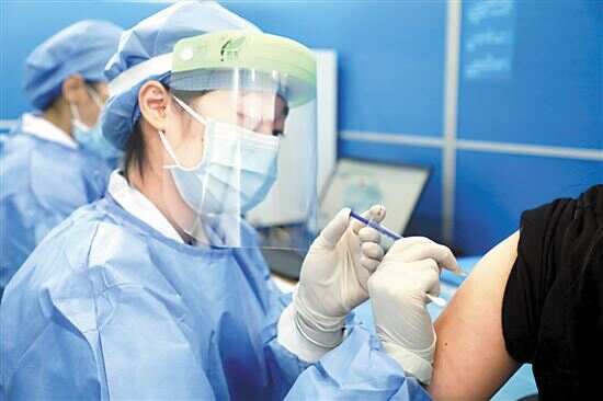 ■天河体育中心新冠病毒疫苗临时接种点于4月26日启用,广州市民在现场接种疫苗。 新快报记者 李小萌/摄 |
