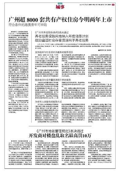 《广州市养老服务条例》表决通过 4月28日,广州市十五届人大常委会第四十八次会议表决通过《广州市养老服务条例》(简称《条例》),待广东省人大常委会批准后实施。《条例》共11章、77条,内容