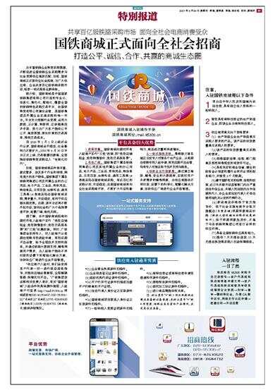 共享百亿级铁路采购市场 面向全社会电商消费受众 打造公平、诚信、合作、共赢的商城生态圈 为丰富铁路企业物资采购渠道,不断促进全国铁路企业采购需求与社会资源供应高效匹配,目前,国铁商城