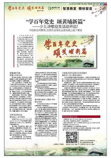 ——少儿诗歌征集活动开启! 不收取任何费用,优秀作品有机会参加线上线下展览 4月26日至5月25日,由广州市黄埔区教育局、广东新快报社联合主办的“学百年党史 颂黄埔新篇”——少儿诗歌