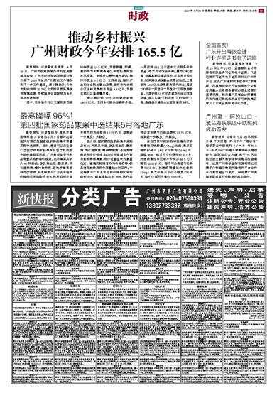 新快报讯 记者黄闻禹报道 4月29日,广州市政府新闻办举行定期新闻发布会,广州市财政局副局长周少卿介绍了2020年以来广州财政工作情况和下一步工作重点。周少卿表示,今年市财政安排20.7亿元支