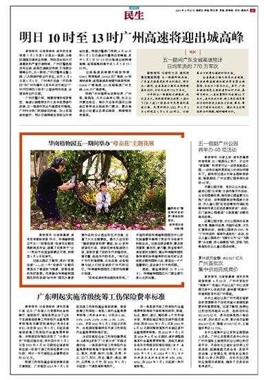 新快报讯 记者麦婉诗 通讯员交宣报道 5月1日至5日是五一假期,为做好道路交通安全保障,预防发生较大交通事故和严重交通拥堵,广州交警提前发布出城、返程交通路况预测,引导群众错峰出行。五一期间,广