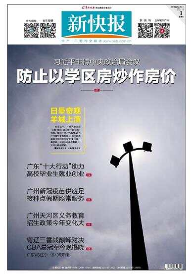 昨日上午,广州天空出现“日晕”景观,蓝天被一圈“彩虹”包围。据@广州天气解释,因为广州高空中有卷层云,其中的冰晶被太阳光折射之后便出现日晕现象,云层中冰晶含量越大,光环也就越显著。 ■新快