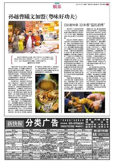 美食节目《粤味好功夫》新一期已于周五在广东卫视播出,来自梅州的“围龙大侠队”将要迎战下一位对手——来自湛江的“三厨鼎立队”。此外,赏味嘉宾孙越、曹曦文、浪胃仙加盟节目。 ■新快报记者 梁燕