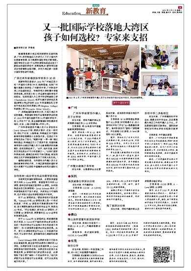 ■新快报记者 罗清峣 随着粤港澳大湾区规划纲要的实施和推进,广州、深圳等地近几年来引入了不少国内外优质教育资源,实力雄厚的国际学校不断涌现。国际学校怎么选?什么样的课程体系适合孩子?新招生