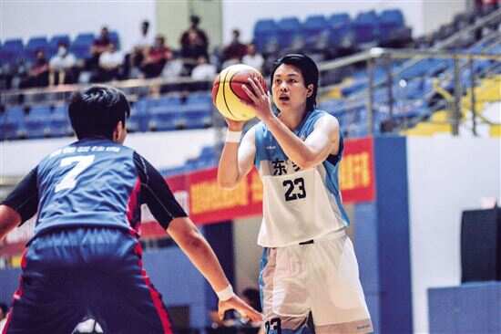 ■东莞队朱琳(右)在比赛中进攻。 |