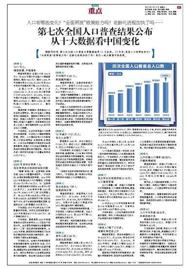 人口有哪些变化?“全面两孩”政策给力吗?老龄化进程加快了吗…… 据新华社电 第七次全国人口普查主要数据结果11日发布。10年来,我国人口有哪些变化?“全面两孩”政策给力吗?老龄化进程加快了