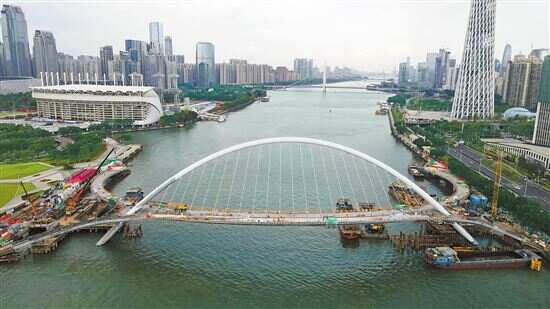 『彩虹』跨珠江 高耸的桥拱、弧线的造型,横亘在珠江上空的广州首座跨珠江人行桥仿若一道彩虹。这座人行桥将于2021年6月底前竣工开通,今后广州市民可从广州塔步行跨越珠江直达二沙岛。 5月13日,广州市政府新闻办举行广州首座跨珠江人行桥全球征名活动新闻发布会,透露了这一消息。人行桥是广州中轴核心段首个由本土设计师完成的地标性建筑物,建成后将成为世界上跨度最大、宽度最宽的曲梁斜拱人行桥,成为珠江两岸经济社会发展的新纽带。 ■新快报记者 黄闻禹 通讯员 陈丽莉 同心桥 体现“老城市新活力” 缝合广州南北轴线 人行桥由华南理工大学建筑设计研究院、广州市市政工程设计研究总院联合设计,广州市城投集团投资、建投公司代建,中铁广州工程局承建。 一桥飞跨珠江岸,天水一色映朝晖。“人行桥跨度为198米,全长488米,宽度为15米,已于2021年2月8日顺利合拢。”发布会上,广州市城投集团党委副书记、总经理陈强透露,目前人行桥已经进入开通前的最后冲刺,正在紧锣密鼓地进行铺装、设施、灯光等工程,将于6月30日前竣工开通。 陈强表示,人行桥超越了普通的桥梁,是缝合城市南北轴线的纽带、点缀城市客厅的活力场所,是一座“同心桥”,充分体现了“老城市新活力”及“活力湾区”的精神风貌。 自信桥 设计融合岭南文化元素 打造广州新名片 值得一提的是,这是广州中轴核心段首个由本土设计师完成的地标性建筑物,设计师自信地将岭南文化元素融入设计中,是植根岭南、借势湾区发展的创新文化名片,是一座“自信之桥”。 “她是广州第一座跨江人行桥,建成后将成为世界上跨度最大、宽度最宽的曲梁斜拱人行桥。”作为人行桥两个设计团队的领衔设计师、中国工程院院士何镜堂在现场介绍,人行桥造型融入了岭南地域文化的元素,桥的平面提取了粤曲水袖的形态特征,桥拱融入了岭南古琴的造型元素,桥面景观以岭南花舟为主题,共同打造极具岭南特色的花城新花桥,打造珠江上看与被看皆宜的新景点。 桥身曲线简洁柔美,与浪漫的滨水环境及音乐岛主题契合,以独特造型打造珠江上的羊城新景。同时,轻盈通透的体量,既能够避免对珠江视线通廊的遮挡,又与都市天际线和谐相融,划出一道珠江上的最美曲线。 “这是一座技术之桥,也是一座人文之桥、艺术之桥。我们相信,她将会成为广州人生活的一部分,记忆的一部分,并成为广州历史的一部分。”何镜堂说。 智慧桥 安装视像识别系统 可及时预警拥挤情况 人行桥还是一座智慧之桥、科技之桥。“从外观上看,桥上除了拉索之外,主要线条几乎没有一处是直线,这在特大桥梁中是非常罕见的,是全三维曲面造型的艺术之桥。”华南理工大学建筑设计研究院副总建筑师、人行桥项目设计负责人、主创设计师丘建发揭秘称,人行桥还是广州首个以智慧桥梁理念设计的人行桥,桥上的视像识别系统,能够识别桥上的人流量与行为,在出现拥挤等危险情况时可以及时预警管控;扫一下桥上的二维码,还可以提供旅游信息、智慧导览以及科普教育等服务。 记者在现场了解到,跨珠江人行桥的建设从市民使用出发,注重人性化设计,体现生态理念,设置复合功能,是融入市民生活的都市绿桥,建成后将实现珠江新城CBD商务区、海心沙亚运公园、二沙岛艺术公园、广州塔游览区等核心区域慢行通道的互联互通,提高集聚人流的快速疏散能力,提升核心区域环境品质,也是市民观景、步行、休闲的新场所。 科技桥 国内建桥史上首次运用超高性能混凝土新材料 在结构技术难题的突破上,人行桥还展示了建设者攻坚克难的自信。广州市市政工程设计研究总院总工程师、教授级高级工程师、广东省首届勘察设计大师宁平华透露,结合桥梁的通行能力、无障碍通行、桥下通航及防洪等实际需求,在保证结构安全、实用耐久的前提下将造型概念转变成可实现的蓝图。 “大师工作团队通过创新设计,克服了结构体系新颖、局部构造复杂、制造精度要求高、施工控制难度大等关键技术难点,在很短的时间内完成了超大跨度曲梁斜拱人行桥结构各阶段的静力分析、复杂节点结构设计、人致振动设计、抗风、抗震设计、耐久性设计、接岸平台、排水防洪等诸多难点的攻关任务。”宁平华透露,这在技术上保障了人行桥建设中各阶段快速、安全的推进。 中铁广州工程局集团党委书记、董事长唐云介绍,首座跨珠江人行桥是世界最大跨度的曲梁斜拱人行桥,具有主梁结构呈曲形、拱肋横向侧斜、桥梁跨度大三大特点,具有梁拱制作安装精度高、线形控制要求严、运输吊装风险大、施工水域及周边区域环境复杂四大难点,中铁广州工程局以“四新”技术攻克了系列施工难点。采用承台围堰组合钢板桩新工艺,在加固基坑的同时,防止江水进入围堰;采用抗压强度可达到150兆帕的超高性能混凝土新材料,是普通C30混凝土抗压强度的5倍,最大限度地降低江水对拱脚的侵蚀,这在我国桥梁建设史上尚属首次运用。该项目目前实现了安全“零事故”、质量“零缺陷”、环保“零投诉”、施工“零封航”。 活动参与 邀您为大桥 冠上最靓的名字 据悉,即日起到5月28日24时,是广州首座跨珠江人行桥全球征名活动的第一阶段,公众可以通过官方平台“新花城”客户端等征集渠道提交名称。第二阶段为专家评审,评委选出