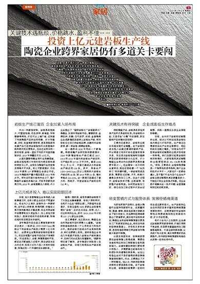 投资上亿元建岩板生产线 陶瓷企业跨界家居仍有多道关卡要闯