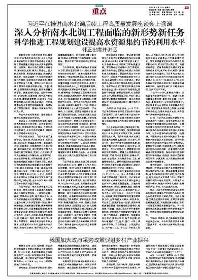 深入分析南水北调工程面临的新形势新任务 科学推进工程规划建设提高水资源集约节约利用水平