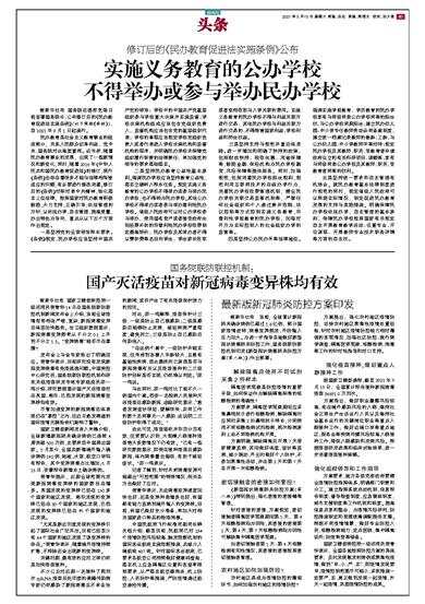 修订后的《民办教育促进法实施条例》公布 据新华社电 国务院总理李克强日前签署国务院令,公布修订后的《民办教育促进法实施条例》(以下简称《条例》),自2021年9月1日起施行。 民办教