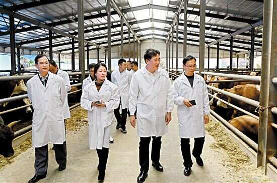 ■中山市委农办、市扶贫办常务副主任王少强在贵州六盘水市盘州市普田小黄牛养殖场调研。 |