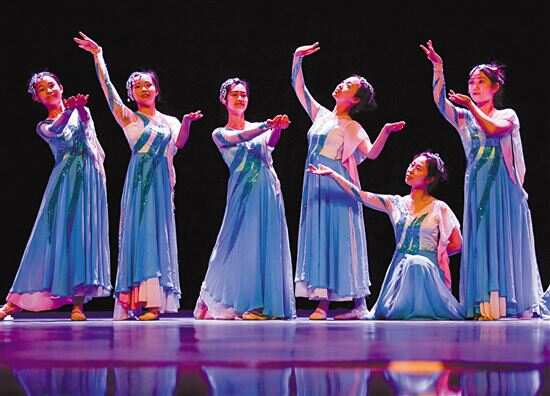 当舞台被灯光照亮,伴随着台下老师随音乐律动的手语指挥,一队舞者在台中央翩翩起舞。