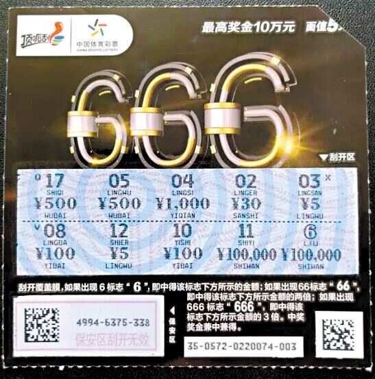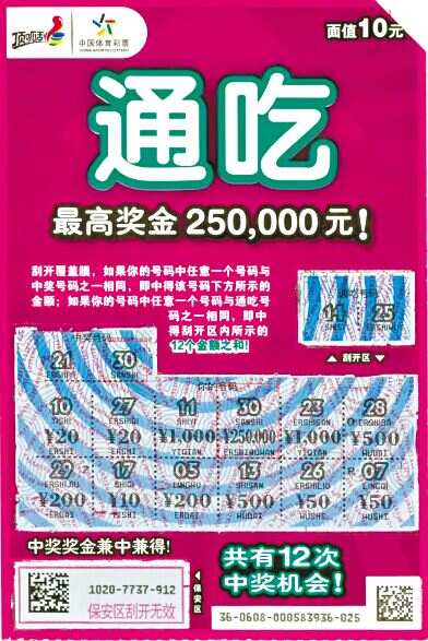 顶呱刮即开票以“即刮买、即开、即兑”的特点一直深受彩民追捧,现正值“体彩顶呱刮1000万元赠票”活动期间,全省即开票销量直线上升,各地也频爆大奖。 ■新快报记者 陆妍思 通讯员 粤体彩 揭阳中出“通吃”25万元大奖 近日,位于揭阳市揭东区月城镇下市公路南22号4420020095体彩实体店传出喜讯,购彩者邱先生(化姓)中得“通吃”一等奖,收获奖金25万元,贡献税收5万元。 邱先生说:“我购买体彩已有七八年了,对‘7星彩’‘超级大乐透’及‘顶呱刮’都有涉猎。平时主要是买大乐透,有时也会买上几张即开票刮一刮,时不时中些小奖,不过没有中过万元以上的大奖。那晚刚好经过体彩店,看到最后几张‘通吃’票,就全部买了,没想中了这么大的奖。” 领取奖金后,邱先生说:“下次还会在这家体彩实体店购彩,希望有一天能在这里再次中得大奖。”而对于奖金的规划,邱先生表示暂时无打算,会先储蓄起来以备不时之需。 汕头中出“666”10万元大奖 日前,汕头市龙湖区衡山路4号的4404030271实体店传来喜讯,该店顶呱刮“666”游戏刮出10万元大奖。中奖次日,幸运儿刘女士(化姓)来到汕头体彩中心领奖,为汕头市贡献税收2万元。 此次中奖票种为5元面值新票种“666”。刘女士透露自己每天下班路过实体店都会买上几注彩票,当晚实体店刚好来了一批新的即开票,种类丰富且摆放整齐,非常有吸引力。在业主的介绍下,刘女士购买了4张票面精美且寓意喜庆的新款即开票“666”。当刮到第三张时,出现了中奖金额“$100,000”,刘女士原以为只中了1000元,经销售员确认后才知道是中了10万元的大奖。 得知中了大奖的刘女士兴奋不已,业主同样很兴奋。业主表示,顶呱刮即开票总是能给购彩者带来惊喜,自己在日常经营中很重视即开票的库存和展示,整齐的摆放不仅赏心悦目,也能引起购彩者的兴趣。 惠州中出“中国红”10万大奖 最近,位于惠州市博罗县湖镇镇商业街42号的4411030827体彩实体店中出体彩顶呱刮“中国红”10万元大奖,为当地贡献税收2万元。 业主透露,中奖者是一位帅气00后小伙子。中奖当晚,小伙在商业街逛街路过体彩店,被店里的即开票展示吸引了目光,就进店购买了“中国红”和“麻辣6”两款即开票。一开始中了很多小奖,当刮到一张中奖号码为“01、13” 的“中国红”即开票,中奖区域 “01”号码下面出现了中奖金额为10万元时,小伙激动得一下子跳了起来,迫不及待地找业主确认。经过业主的核对,确定小伙子中了10万元大奖。 得知中奖,小伙子特别开心:“刮即开票只是为了给生活增添一点乐趣,没想到刮出了惊喜。”他还表示以后会继续支持体彩顶呱刮,支持公益事业。