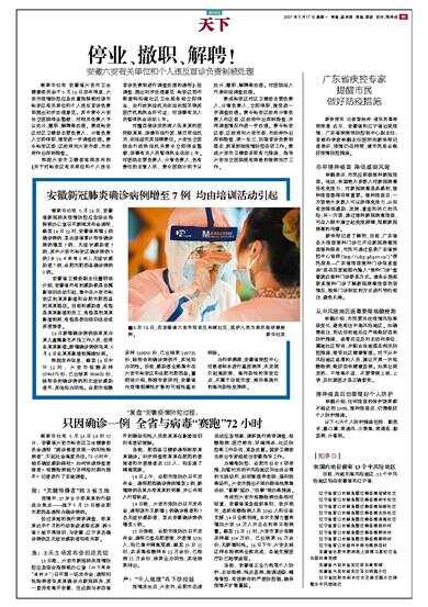 “复盘”安徽疫情防控过程: 据新华社电 5月13日14时57分,安徽省六安市裕安区卫生健康委员会通报“就诊患者发现一例阳性检测者”,引起社会高度关注。72小时中,能否确定感染路径?如何快速