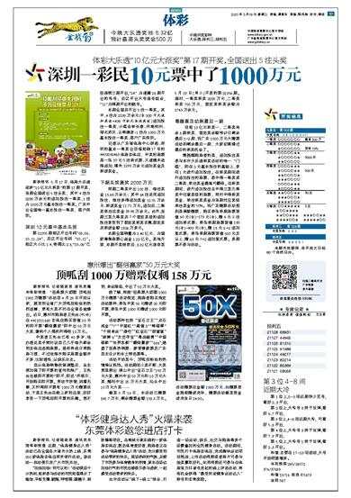 深圳一彩民10元票中了1000万元