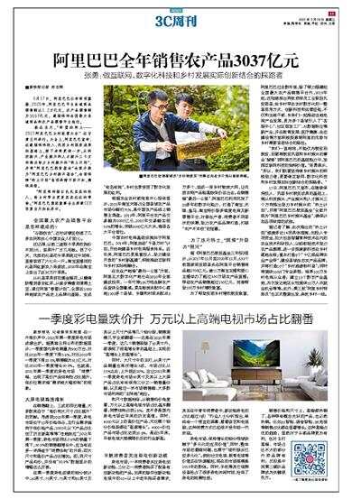 张勇:做互联网、数字化科技和乡村发展实际创新结合的探路者 ■新快报记者 郑志辉 5月17日,阿里巴巴公布两项数据:2020年,阿里巴巴平台县域商品销售额达1.2万亿元,农产品销售额为