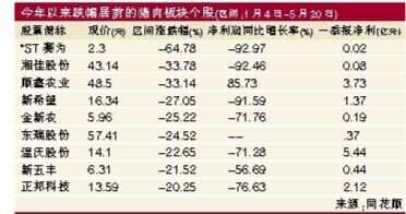 新快报讯 记者涂波报道 在国内生猪产能恢复、养殖企业出栏增加的背景下,国内猪肉价格持续下跌。进入5月,国内生猪均价更是跌破20元/公斤大关。5月19日,生猪期货主力合约收盘报价23550元/吨,较1月8日生猪期货上市首日创下的高点已累计下跌达7130元/吨,创下生猪期货上市以来最低价。业内人士表示,目前猪价的下滑幅度已超出预期,后期猪价跌势或稍止企稳。 批发端的跌价反映到零售端超市、菜市场的价签上。新快报记者从广州天河某些商超了解到,前腿猪肉价格维持在18元/斤,前肘20元/斤,排骨30元/斤左右可买到。而去年同期,广州市民购买前腿猪肉基本维持在35元/斤左右。市民张姨告诉记者,“之前猪肉价格太高,家里大多以鸡肉、鱼肉替代,现在价位还比较亲民。”5月10日全国生猪出栏均价18.88元/公斤,19日出栏价格有所提高达23.36元/公斤,但相较2021年1月第1周36.33元/公斤的高点,已跌去35.7%。 发改委数据显示,按5月目前的价格及成本推算,未来生猪养殖头均盈利为270.25元,相比此前猪价高位时头均两三千元的盈利水平,明显已大幅缩水。猪肉销售量增长但猪价下跌,猪肉板块上市企业今年以来股价跌幅明显,整体跌幅超11%。板块30余家上市公司中仅有6家股价实现上涨,其中巨星农牧区间涨幅达35.08%居第一位;有25家公司股价呈不同程度的下跌,占比逾80%,跌幅前三位的有*ST赛为、湘佳股份和顺鑫农业,区间跌跌均超30%,*ST赛为趺幅达64.78%居首。 从净利润增长率来看,今年一季报净利润同比增长的仅有16家,增幅超100%的公司有8家。巨星农牧和京基智农净利润同比增长率居前列,分别为6973%和达582.92%。而净利同比跌幅较大的包括正虹科技、*ST赛为和新希望等,跌幅均超90%。