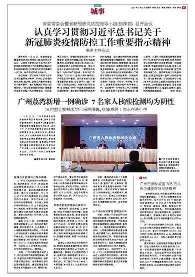 广州荔湾新增一例确诊 7名家人核酸检测均为阴性