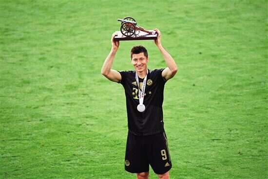 据新华社电 2020-2021赛季德国足球甲级联赛最后一轮全部9场比赛22日同时开战,拜仁主场5∶2大胜奥格斯堡,莱万多夫斯基压哨进球,创造了德甲单赛季进球纪录(41球)。 已经提前两轮夺冠的拜仁对阵已于上一轮确定保级的奥格斯堡,比赛结果对两队都无关痛痒。拜仁展现了一如既往的强大攻击力,上半场就4∶0领先。奥格斯堡队长赫维勒乌在开场不久后乌龙球,接着格纳布里、基米希和科曼纷纷进球。下半场拜仁减缓了进攻力度,奥格斯堡一度势起,哈恩和尼德莱赫纳接连为奥格斯堡扳回两球。第90分钟,萨内外围远射,奥格斯堡门将扑球脱手,莱万补射入网,打破了尘封49年之久的德甲单赛季进球纪录,并且连续4个赛季荣膺德甲射手王。前纪录由盖德·穆勒保持。 赛后,莱万说:“我没有太多话要说,我整场比赛都在尝试进球,我尝试了一切,在第90分钟终于做到了,非常高兴。我看到萨内要射门,所以我预料到有机会补射。我当然想早点进球,也知道机会迟早会到来,感谢队友所做的一切。” 在欧洲金靴榜单上,莱万同样高居榜首。