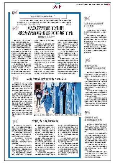 直击 据新华社电 5月22日深夜,忙碌了一天一夜的漾濞县苍山西镇30余名基干民兵仍未休息。入户排查险情、疏散转移群众、搭设救灾帐篷……尽管已很疲惫,但这些奋战在抗震一线的勇士,为了群众的安