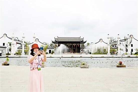 ■红光村的“客都人家”康养文旅综合体项目,游客在美景中自拍。 |