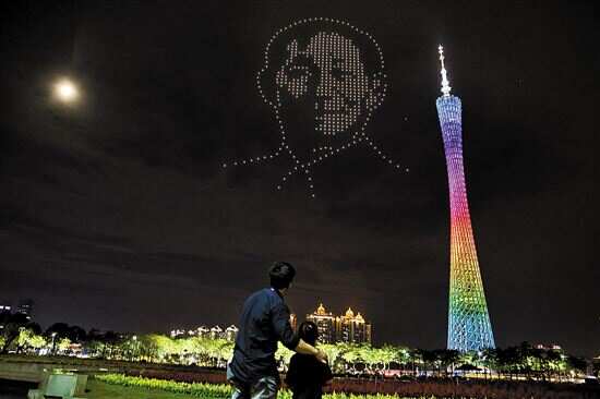 新快报讯 记者黄闻禹 夏世焱报道 5月22日,“共和国勋章”获得者、中国工程院院士、国家杂交水稻工程技术研究中心主任袁隆平在长沙逝世,享年91岁。鲜花敬院士、纸条寄深情、网络托哀思……人们皆以各自的方式缅怀、送别这位科学巨匠。昨晚,广州市政府新闻办举行“纪念袁隆平院士”无人机编队飞行活动,500架无人机从珠江边起飞,开展一场光影缅怀活动。 在生前住院的日子,袁老还在时时刻刻关心试验田里的稻子长得好不好,令人动容。夜空中,首先浮现的是一片沃田,那是袁老对田间的思念。随后,一位熟悉的身影出现,袁隆平院士将一株小苗插进田间,凝聚院士心血的小苗,最终长成金灿灿的稻谷,颗粒饱满,散发着醉人的芳香。 慢慢地,佩戴着“共和国勋章”的袁隆平院士出现在夜空中。无人机在夜幕中写下袁老最常说的话,“人就像种子,要做一粒好种子。”随后,袁隆平院士的肖像再次浮现,引发我们对他的无尽思念。 “1930.9-2021.5”,是袁隆平院士生命的跨度。“一稻济天下”,正是他这一生最好的写照。如今,他已把科研论文写在大地上。禾下乘凉梦,十里稻花香。