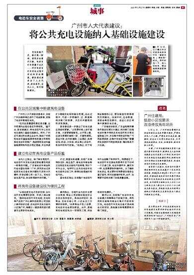 电动车安全调查 广州市人大代表建议:将公共充电设施纳入基础设施建设 充电设施不足、缺乏统一标准、居民安全意识欠缺、电动自行车质量不过关……针对电动自行车充电过程中存在的安全隐患,新快