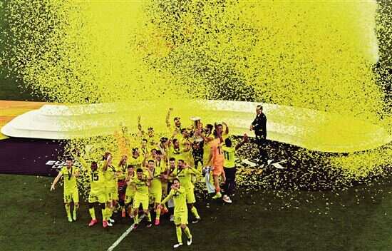 ■5月26日,比利亚雷亚尔队球员在颁奖仪式上庆祝。 |